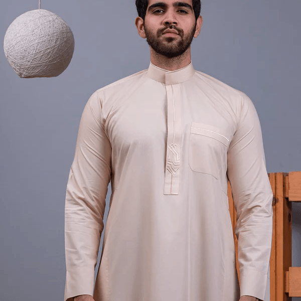 Light Beige Embroidered Thobe