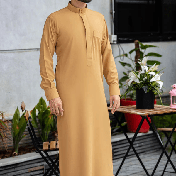 The Plain Gold Saudi Thobe combines traditional style with a subtle touch of luxury. The warm gold color gives a refined Read More